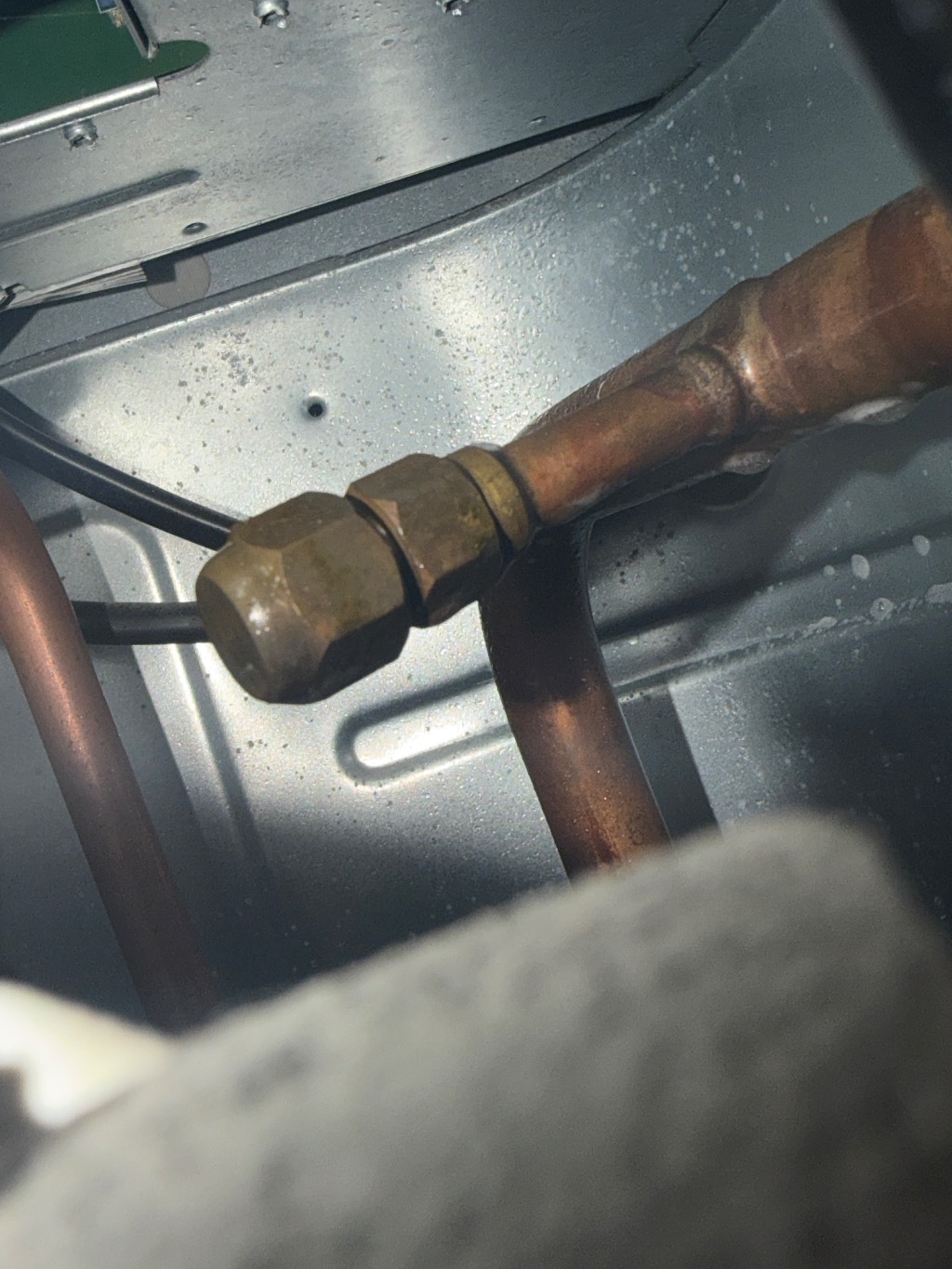 Après un diagnostic précis et complet, nos techniciens spécialisés en dépannage de pompe à chaleur air/eau ont identifié une fuite de fluide frigorigène sur un raccord du circuit frigorifique. Cette fuite était à l’origine du mauvais fonctionnement de la pompe à chaleur et de la perte de rendement.