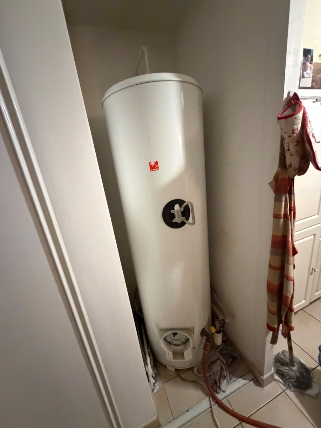 Lors de cette intervention à Brunoy, notre équipe JB Climat Service, spécialisée en plomberie, chauffage et chauffe-eau électrique, a commencé par la mise en sécurité de l’installation, avec la coupure de l’alimentation électrique et de l’arrivée d’eau. Après la vidange complète du chauffe-eau défectueux, nous avons procédé au démontage de l’ancien ballon d’eau chaude percé.