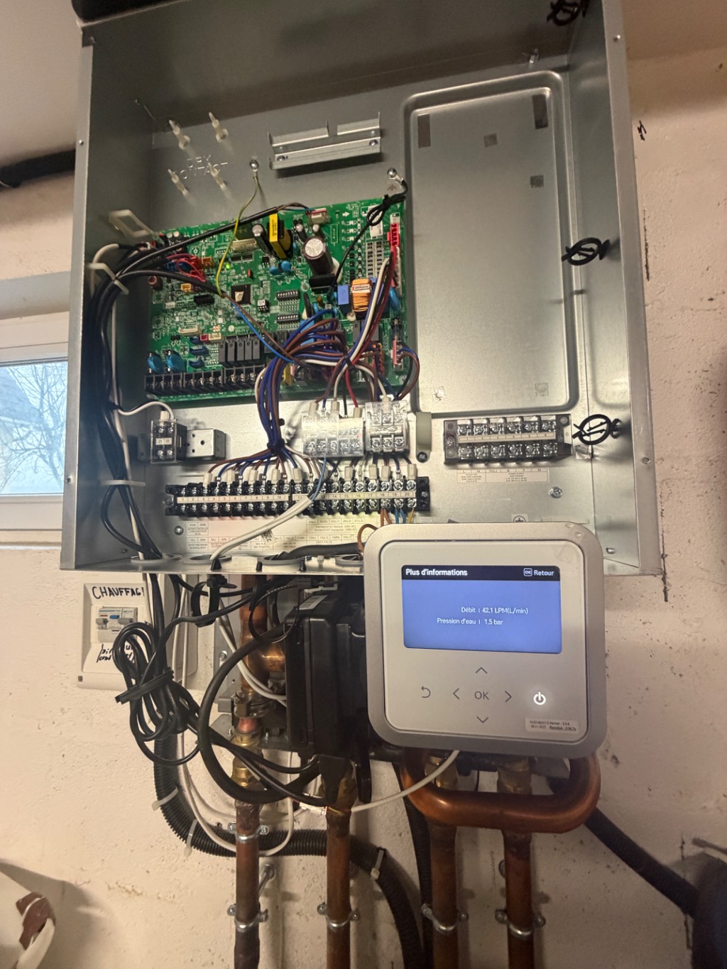 Un contrôle du système hydraulique a également été réalisé : vérification de la pression, du vase d’expansion, des circulateurs et de l’absence de fuites. Enfin, un diagnostic global a permis d’anticiper d’éventuelles anomalies et d’optimiser les réglages pour améliorer le rendement de l’installation.