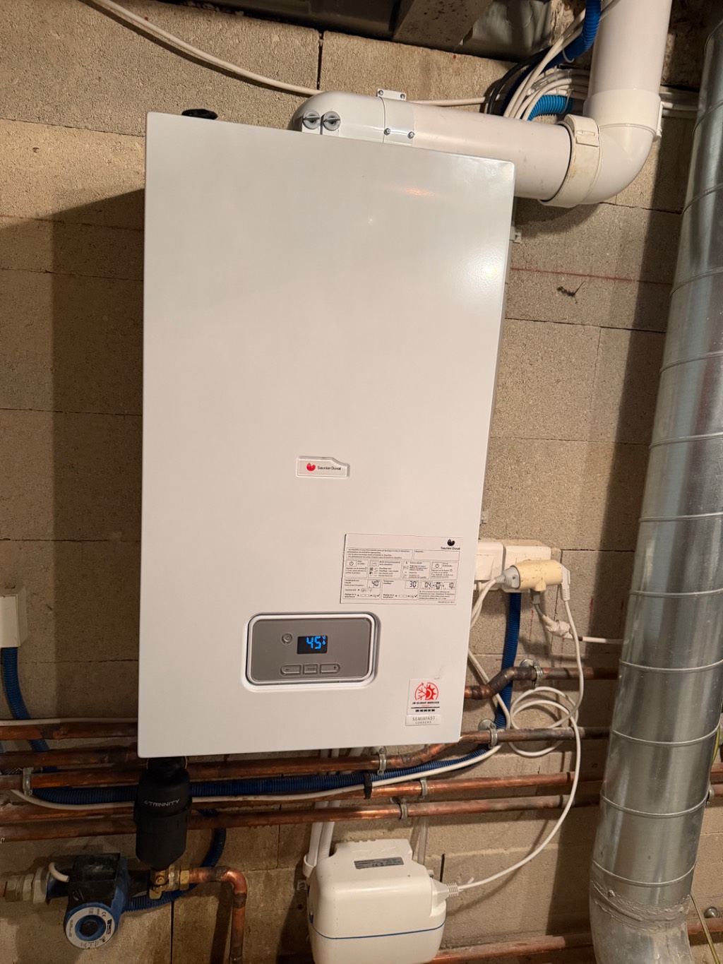 Après validation, JB Climat Service a procédé au désembouage complet du circuit de chauffage, suivi de l’installation de la chaudière Saunier Duval à condensation, de sa mise en service et des réglages de fonctionnement. Des tests ont été réalisés afin de garantir un chauffage homogène, une production d’eau chaude efficace et une consommation de gaz maîtrisée.