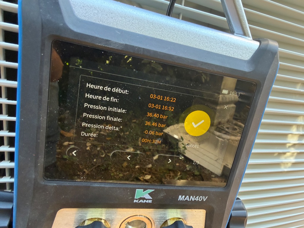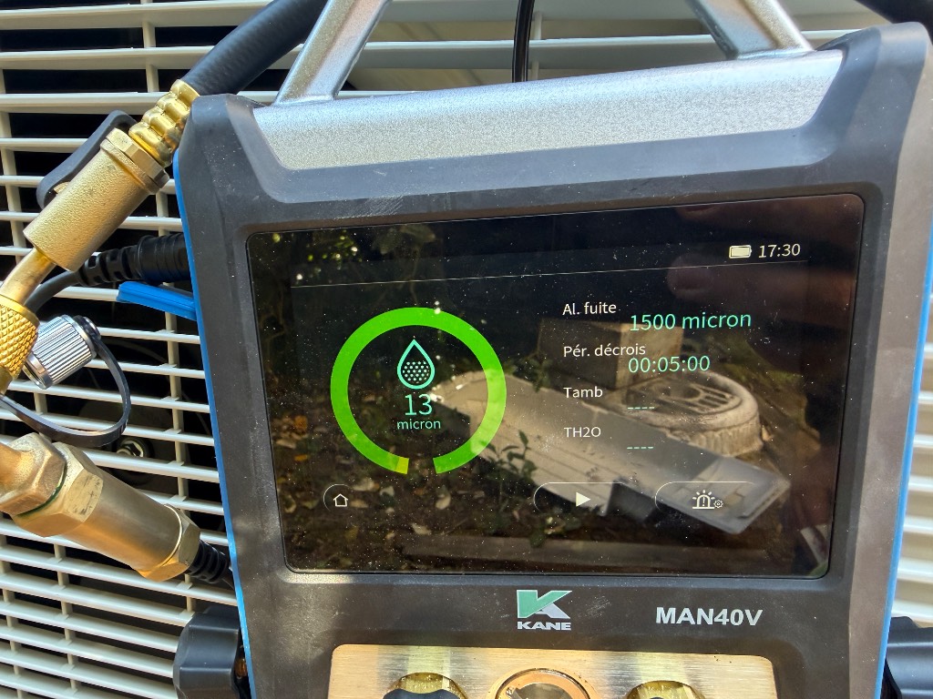 Après les raccordements, une mise en service complète a été effectuée. Cette étape comprend le tirage au vide du circuit frigorifique, les vérifications d’étanchéité, les réglages de fonctionnement ainsi que les tests de performance.
